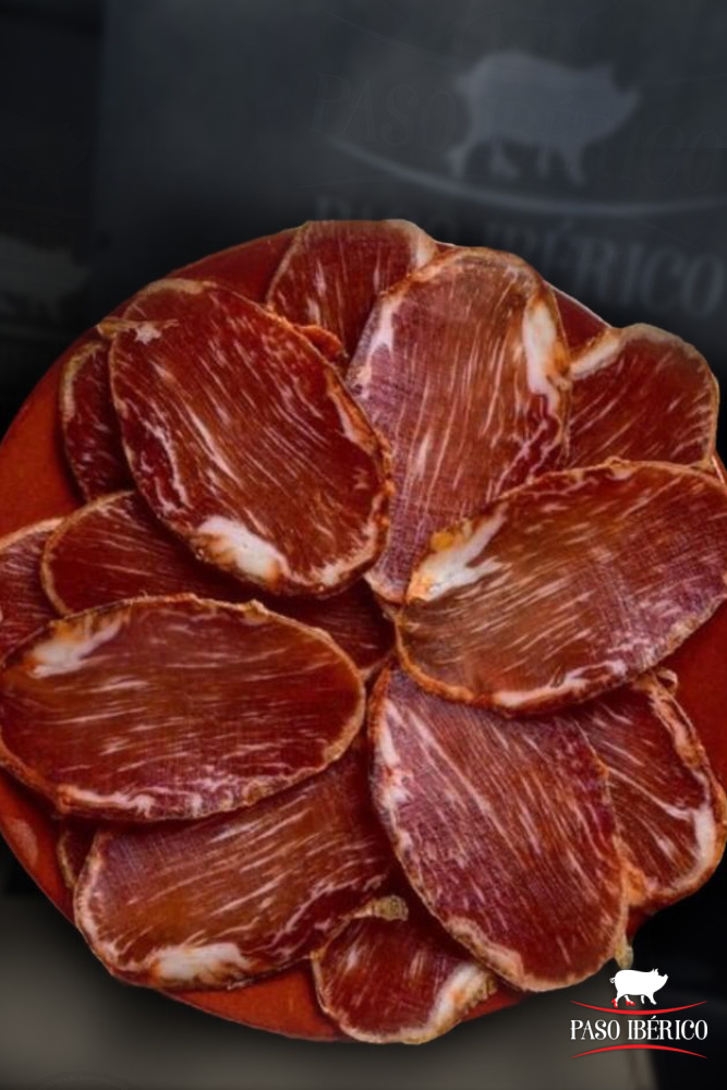 El Lomo de Bellota 50-75% Raza Ibérica seleccionado por Paso Ibérico, está elaborado con los mejores cerdos de bellota ibéricos. Su color y sabor te transportan a una experiencia inigualable.