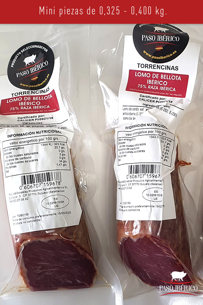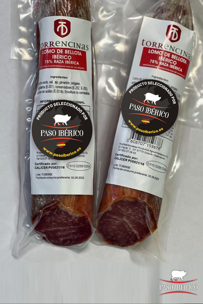 El Lomo de Bellota 50-75% Raza Ibérica seleccionado por Paso Ibérico, está elaborado con los mejores cerdos de bellota ibéricos. Su color y sabor te transportan a una experiencia inigualable.