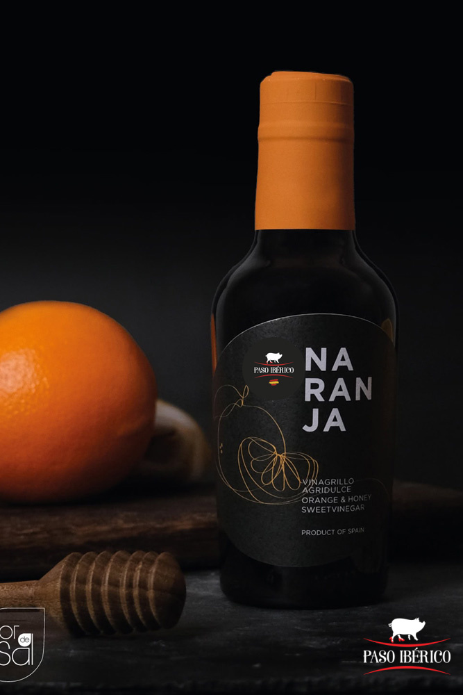 Con naranja confitada y miel y su toque citrico está sorprendiendo por su frescura y delicadeza, que aporta un toque diferencial y suave a cualquier plato.