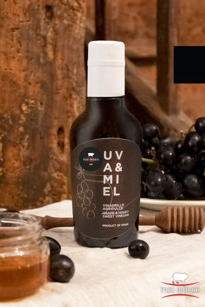 El vinagrillo agridulce de uva y miel es una de las últimas incorporaciones del catálogo de Flor de Sal. Se trata de un producto totalmente natural, libre de sulfitos y conservantes, elaborado únicamente con miel, vinagre y agua.